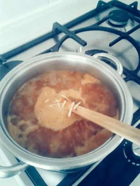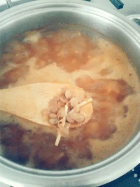 ve tavadaki sos tenceredeki haslanmis yesil mercimege eklenir ardindan eristede eklenir erişteler pisinceye kadar corba kaynatilir
