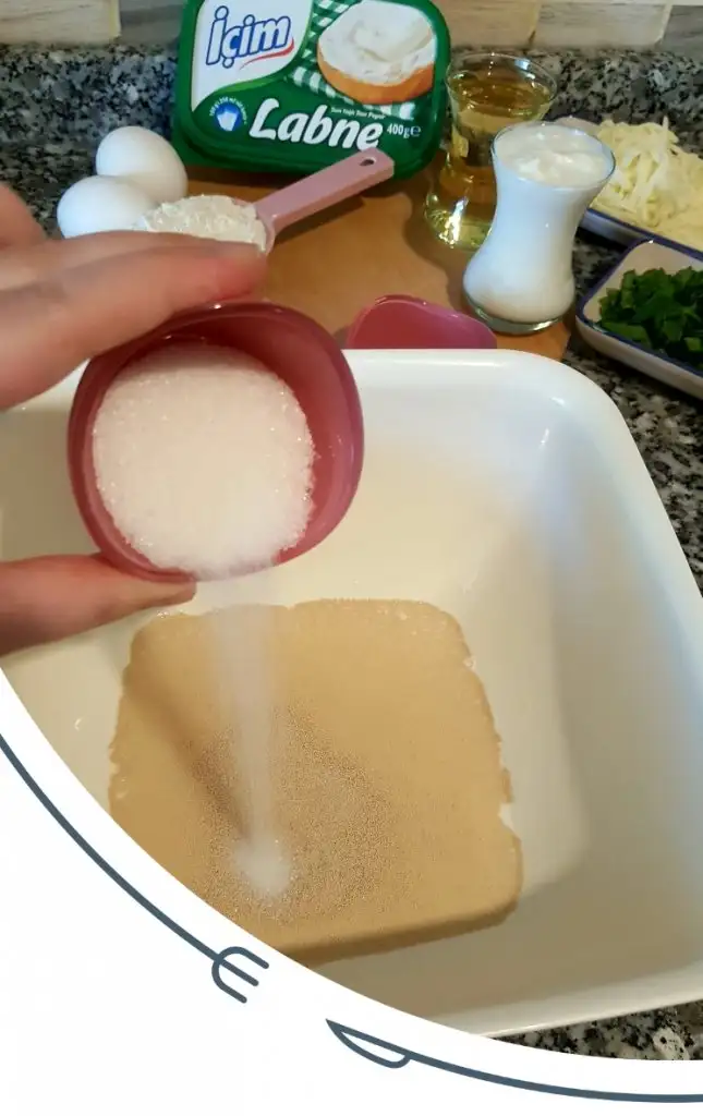 • Maya aktifleştikten sonra üzerine sıvı yağ, yumurta akları, yoğurt ve tuz eklenip karıştırılır.