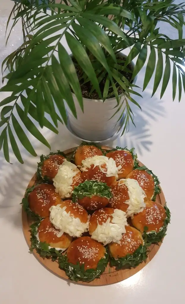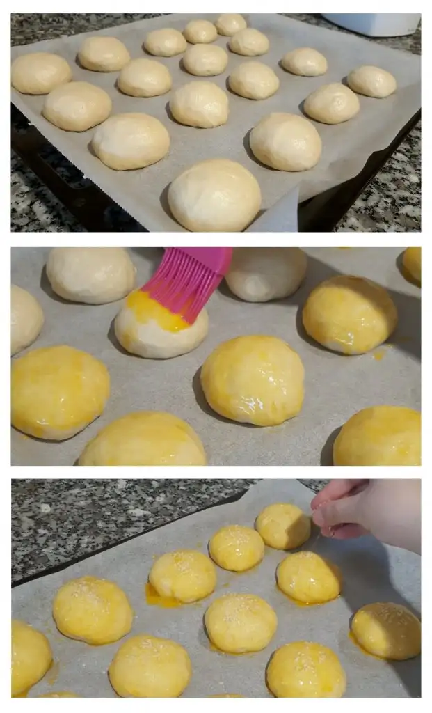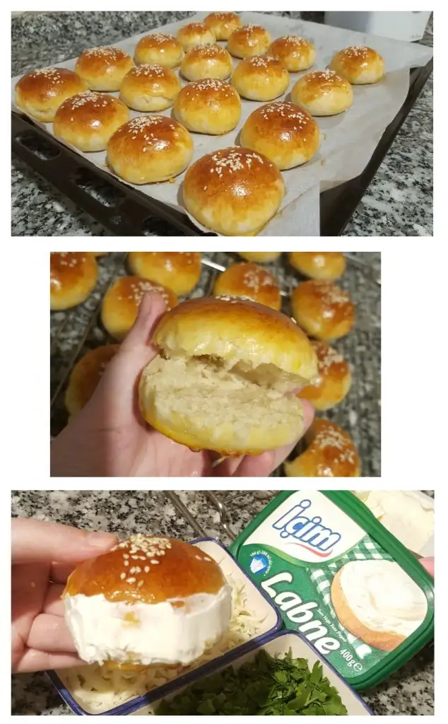 • Üzerlerine yumurta sarısı sürelim isteğe bağlı olarak susam serpebilirsiniz, 180 derece önceden ısıtılmış fırında 20-25 dk üzerleri kızarana kadar pişirelim.