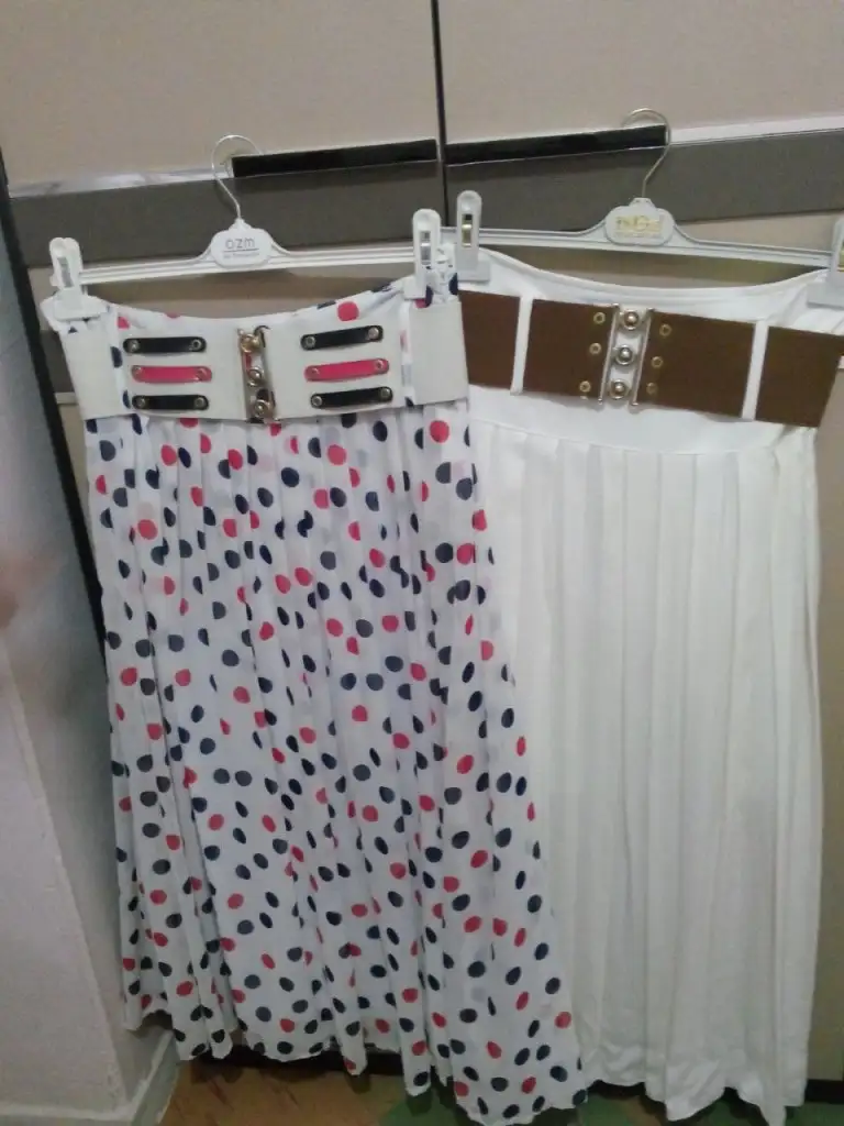 3.beyaz uzun yazlık etek ,yüksek bel beyaz ,buz mavisi pantolon arıyorum 42-44 beden