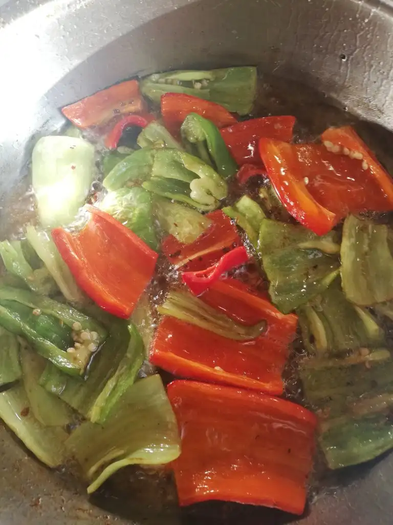 -Biberler kızarırken içinden 1 kaşık yağ alıp üzerine yarım kaşık Salçayı kavrulur, sonrasında üzerine domatesleri eklenir, az kavurur 1 çay bardağı su eklenip pişirilir.