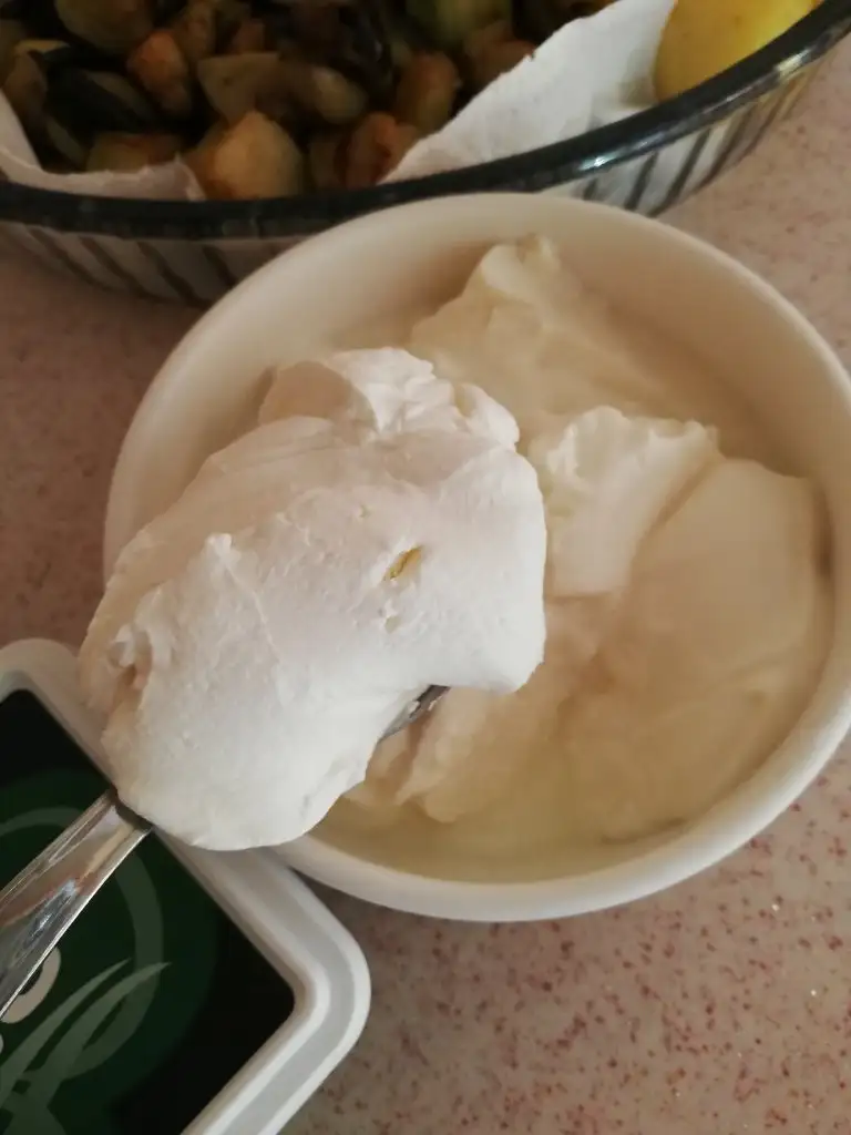 -Fazla yağı alınsın diye kağıt havlu üzerine alınan kızartma, kağıdı alınıp harmanlanır, ortası açılır. İçine isteğe bağlı 1 diş sarımsak ve 1 kaşık labne eklenen yoğurt dökülür.