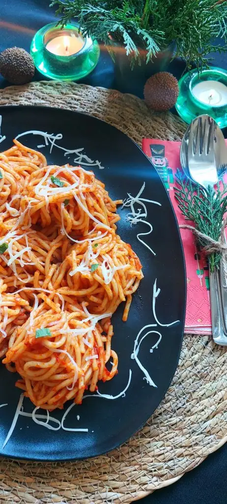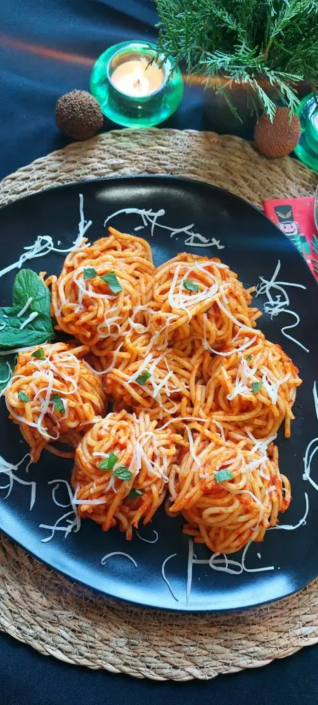 Hepimiz evde yemek olmadığında ya da yemek yapmaya üşendiğimizde bi salçalı bi Makarna olsa da yesek deriz iste ben size gece gündüz farketmeksizin yesek dedigimiz o makarnayı yaptım çok kolay ama çok çok lezzetli asla bir tabakla yetinmeyeceginiz çocukluğumuzun makarnası
