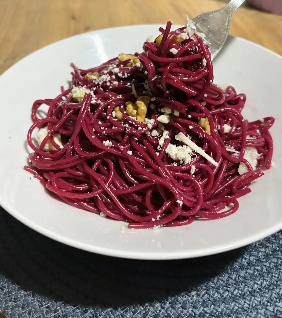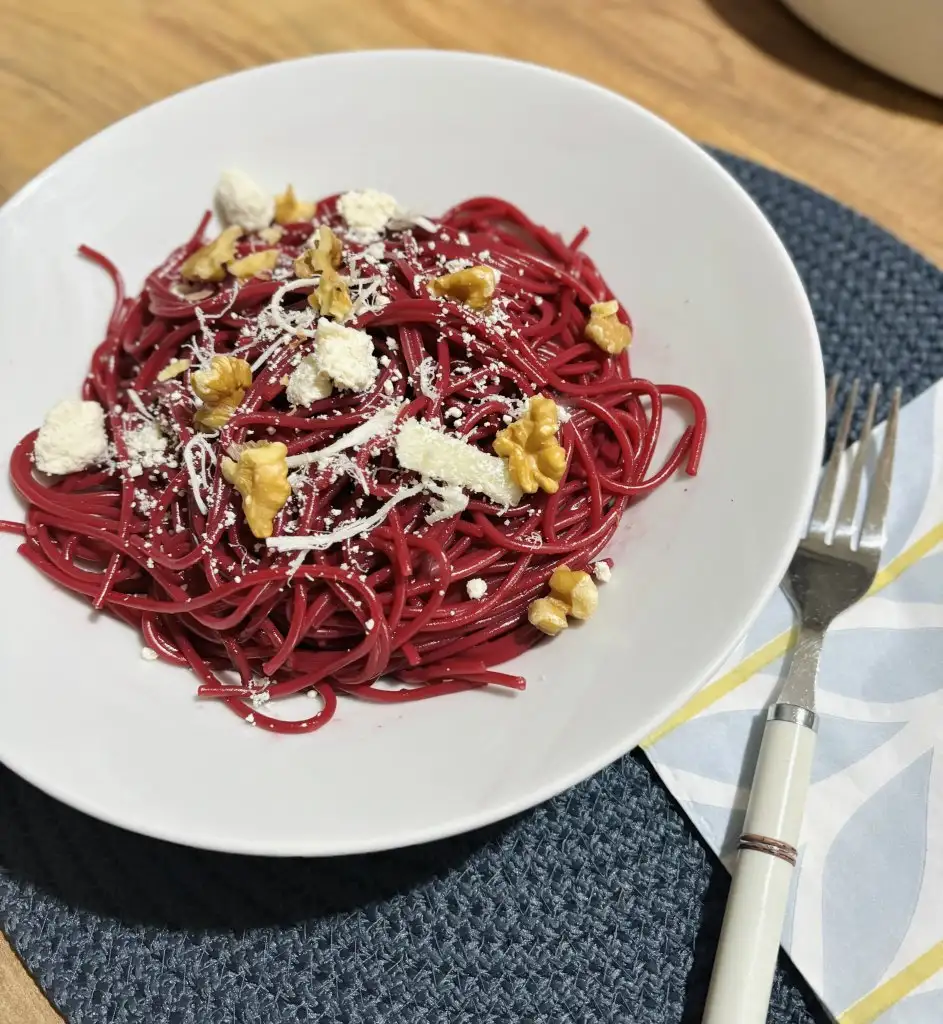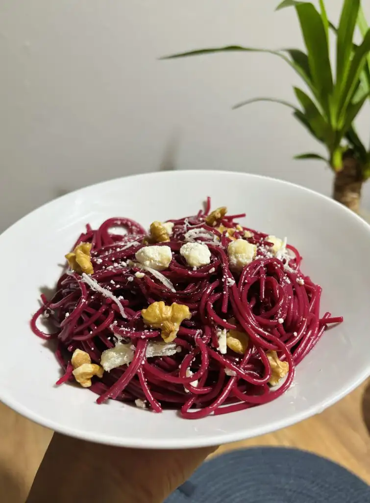 En sevdiğim renk olan morun tonu ile özdeşleşen bir spagetti tarifi ile karşınızdayım.