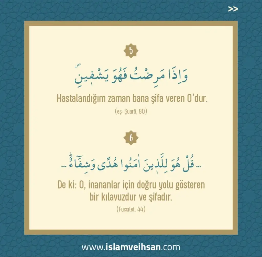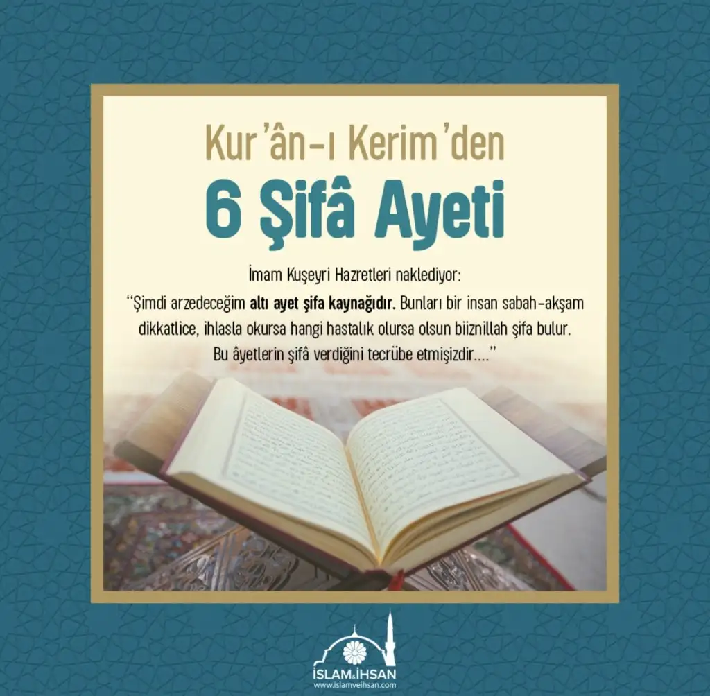 Burada bir arkadaşımız şifa ayetleri paylaşmıştı ben de ondan almıştım, siz de okuyabilirsiniz.