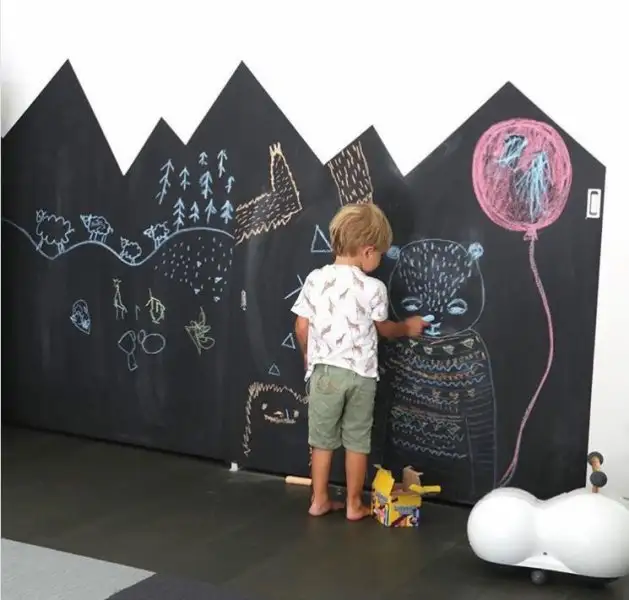 Begendigim ornekler sunlar; boyayi duz bir cizgiyle bitirmek yerine farkli sekiller kulanilabilir, butun duvar genisligini kullanmak yerine duvar uzerinde bir alan belirlenebilir, odada isik yoksa siyah disindaki kara tahta boyalari uygulanabilir, tum duvar genisliginde faydalanilarak boyalar, kagit, tebesirler icin minik bir organizasyon yapilabilir, siyah kara tahta boyasi son fotograftaki gibi bir kompozisyonla yumusatilabilir ve ayni sey diger renkler icin de gecerli. Neler yapilabilecegi odaya bagli tabii.