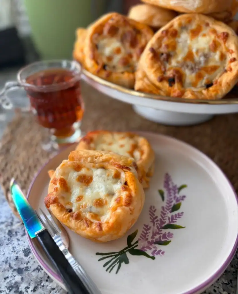 Pişmeye yakın tepsimizi çıkarıp rendelediğimiz kaşarları da börek üstlerine yerleştiriyoruz,kaşarlar eriyene kadar pişiriyoruz.