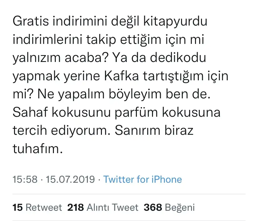 Benim sorunum şu; şuanda çevremdeki birçok arkadaşım böyle. Yani oturup hayattan, ülkeden , ne bileyim bizi geliştirecek şeylerden konuşabilecek çok az kişi kaldı. Bu durumda onlara göre de ben sıkıcı olabilirim tabii.