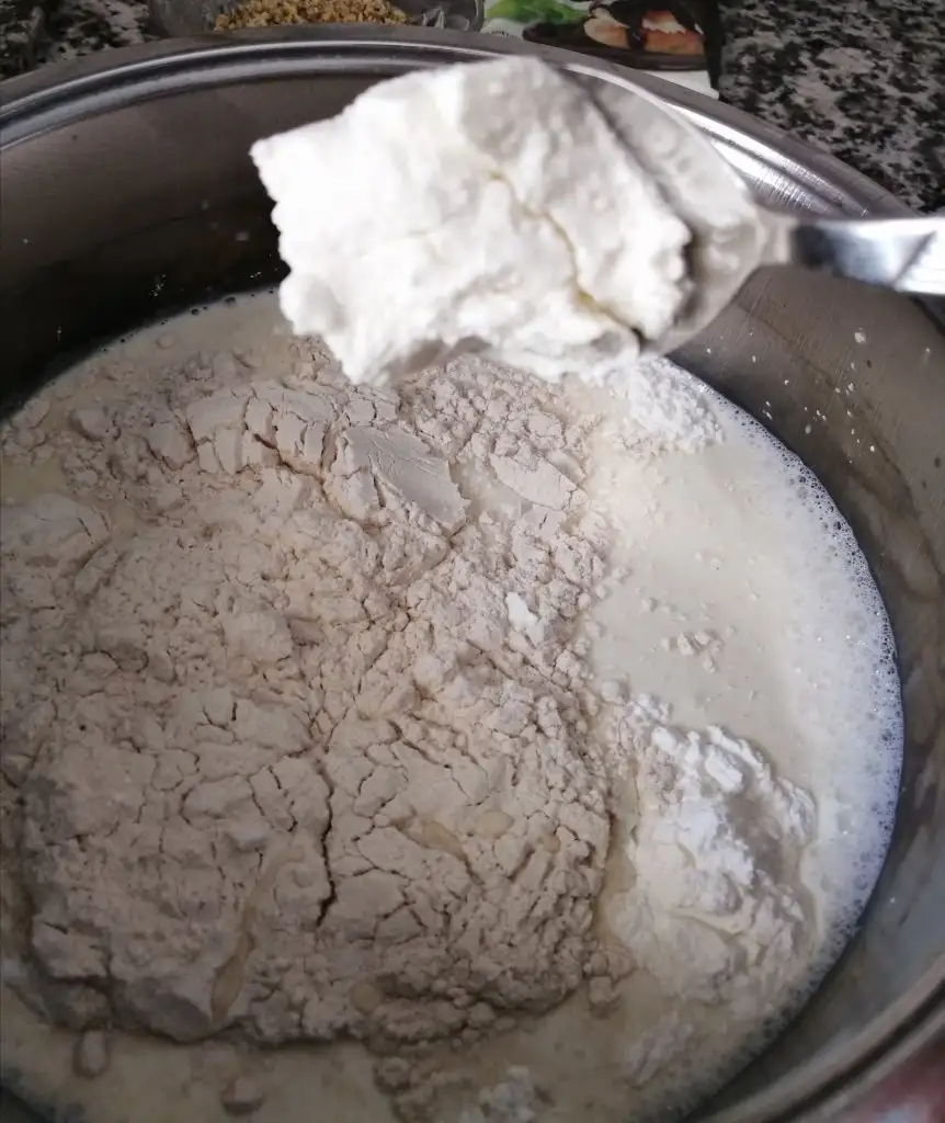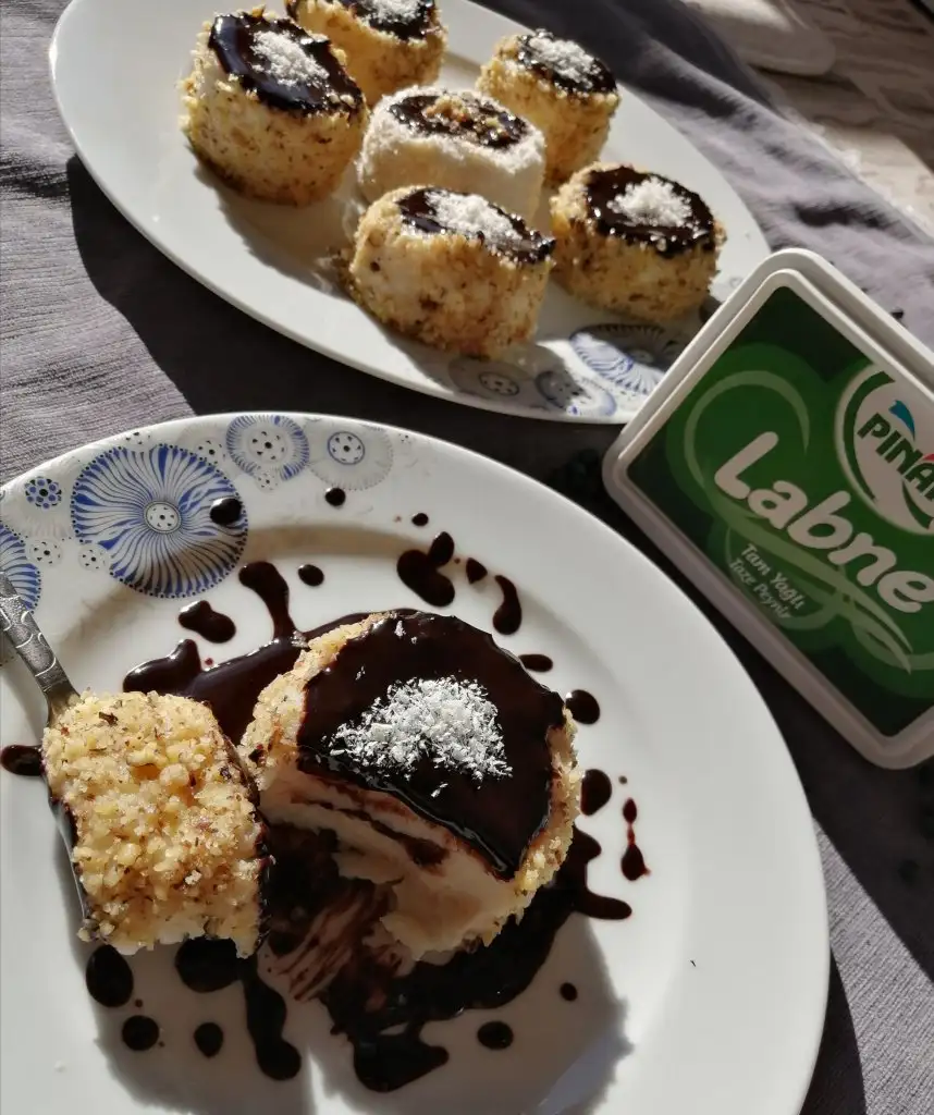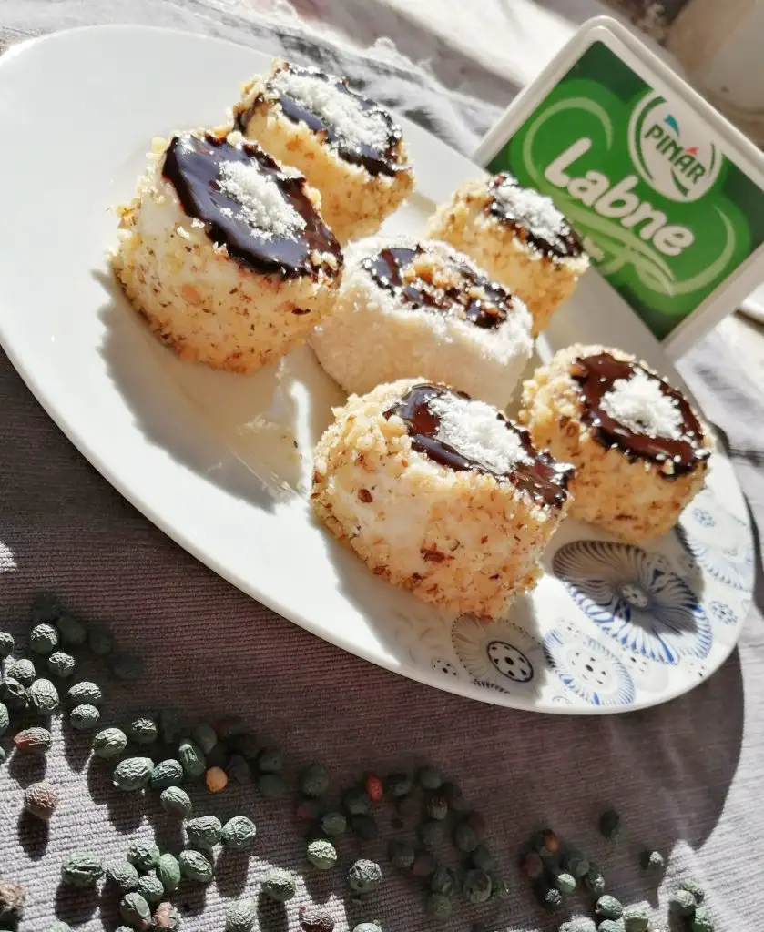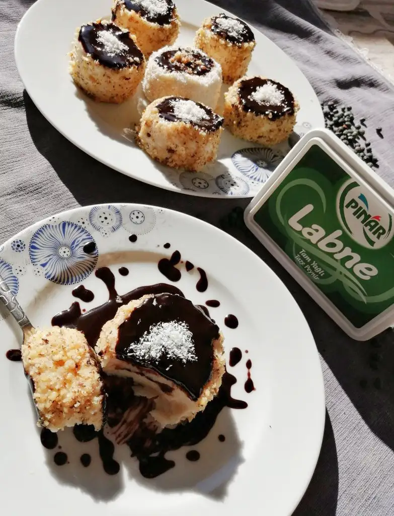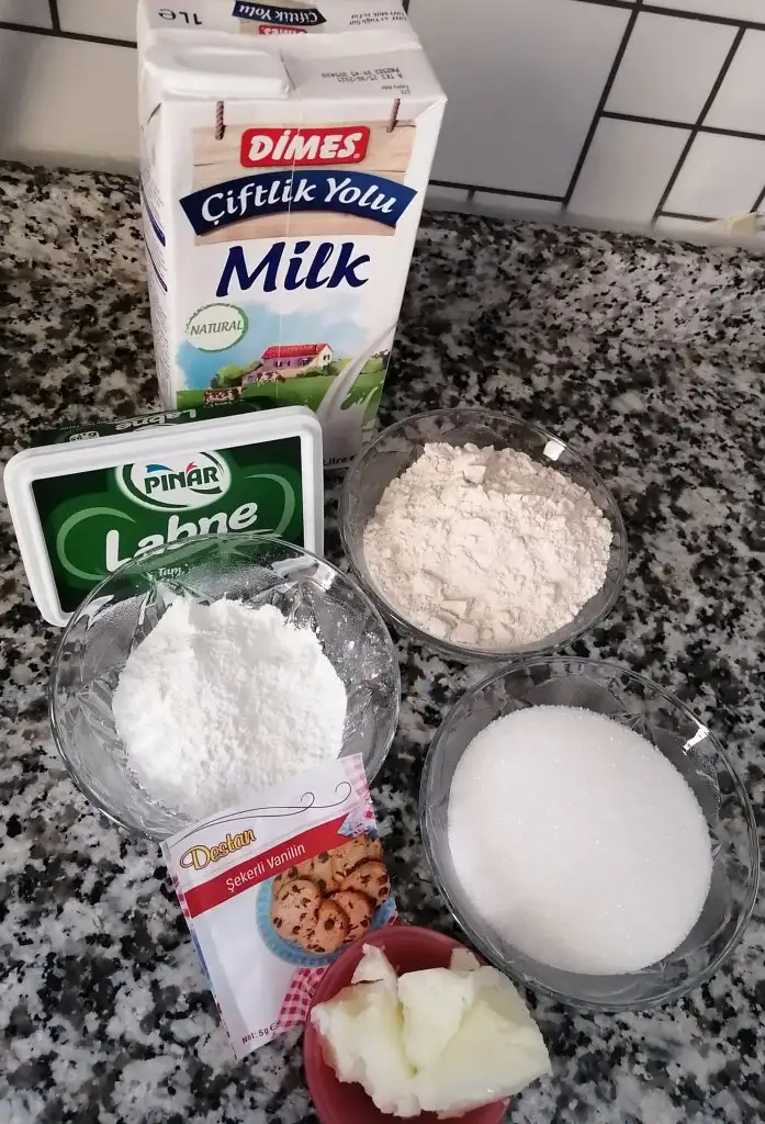 Süt, şeker nişasta, labne ve unu tencereye alıp içiye karıştırıyoruz kıvam alıncaya kadar pişiriyoruz