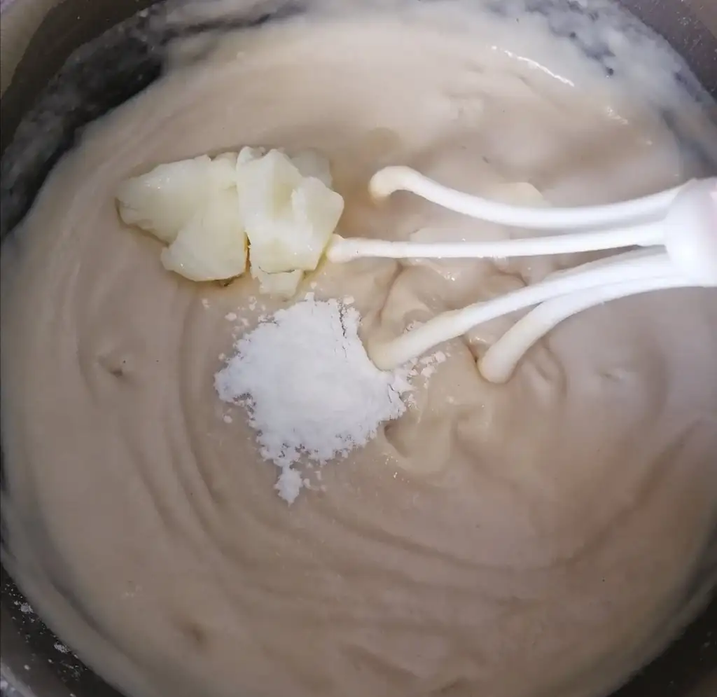Kıvam alınca ocaktan alıp vanilyayı ve tereyağını ekliyoruz iyice karıştırıyoruz