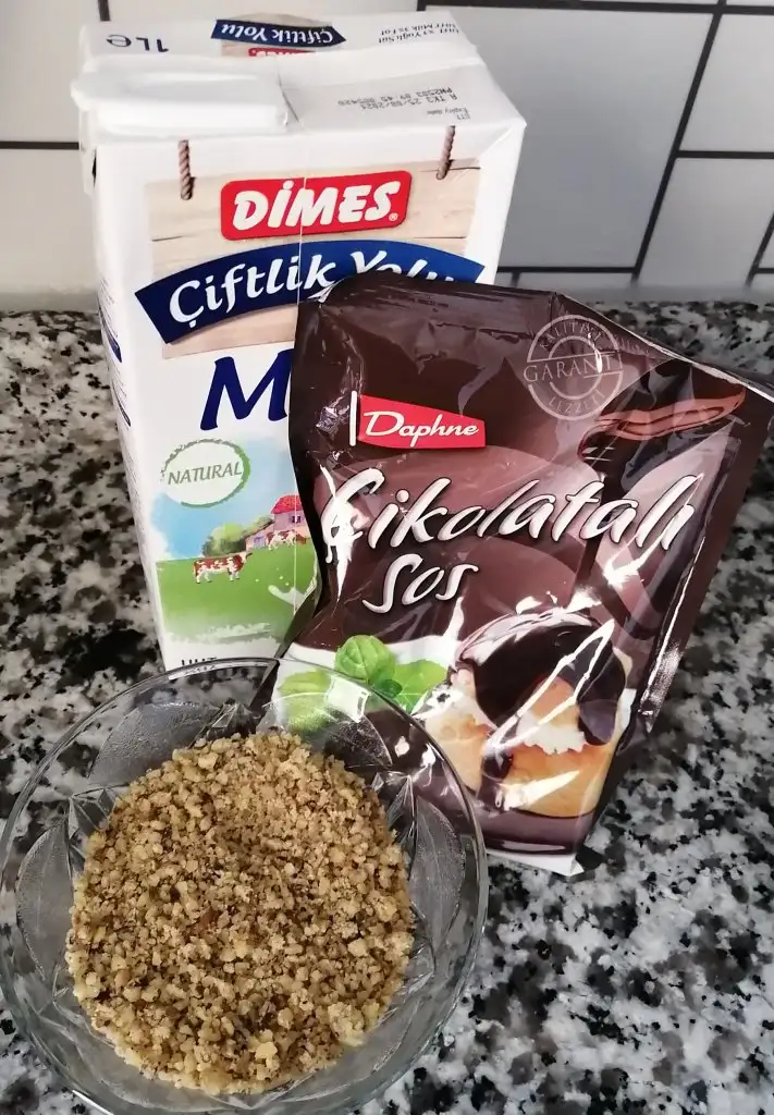 Çikolata sosu için sütü ve sosu tencereye alıp kıvam alıncaya kadar pişiriyoruz
