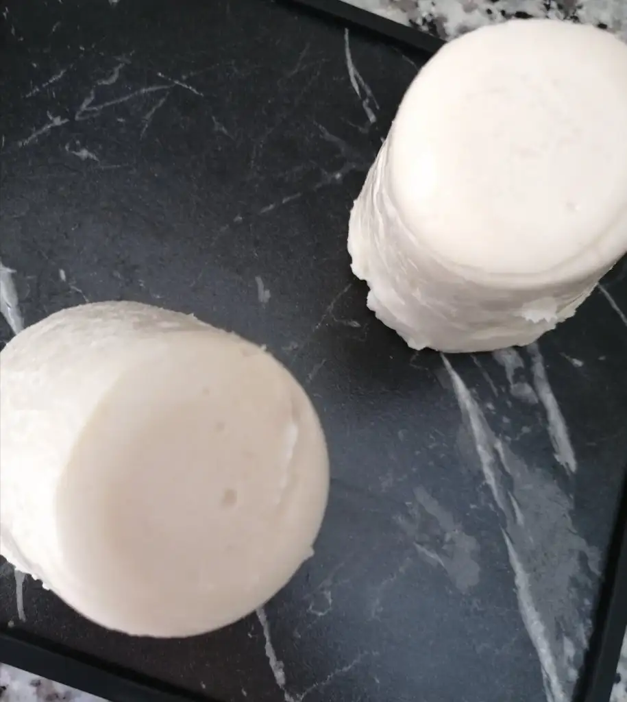 Buz dolabında bekleyen muhallebim izi alıp bardağı ters çevirip çıkarıyoruz