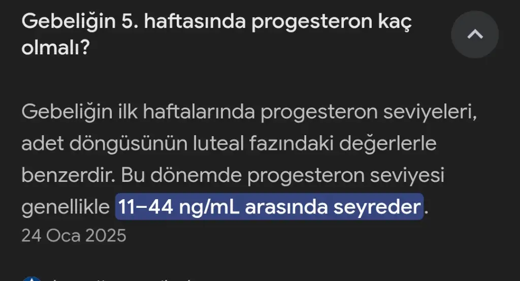 O konu hakkında hiç bir bilgim yok sen yine de gönlünü ferah tut kuzu Allahın izni ile bişi olmaz yaaKızlar bugünden itibaren 5. Haftama girdim dün Progesteron testi verdim 11 çıktı doktor 10 un altı olursa progestan 200 mg başlarız demişti bana 11 biraz düşük geldi yani en azından 13 15 bekliyordum D Dua ilesoguknevalee E esrarengizl
