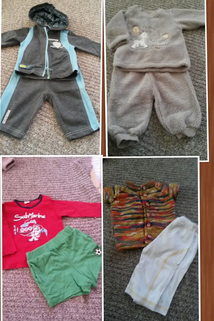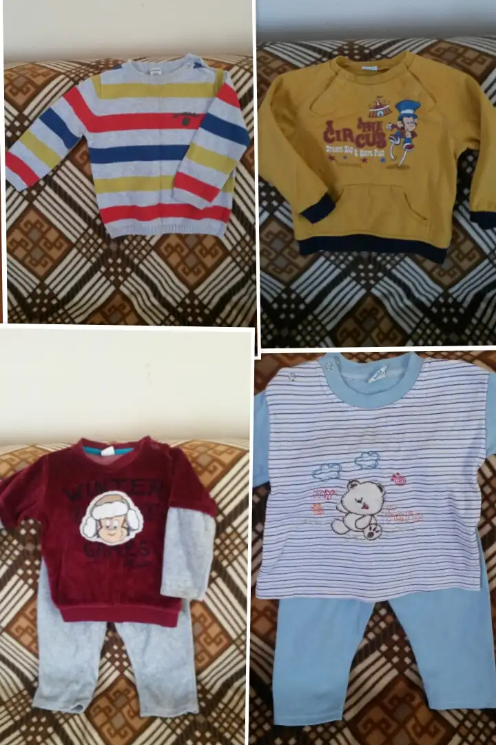 resim yokmu ?6-9-12 ay Temiz ikinci el lcw ürünü erkek bebek kıyafetleri. Bir adet altlı üstlü (12-18ay)takım üç adet uzun kollu tişört bir kapşonlu swit üç zıbın bir pantolon bir alt esofman bir adet takım(lcw ürünü değil) bir adet el örgüsü hiç kullanılmamış yelek hepsi az kullanılmış ve temizdir ayrıyeten bi iki parca ufak ürün hediye olarak koyacağım içine kargo alıcıya aitse 50 tl kayseri