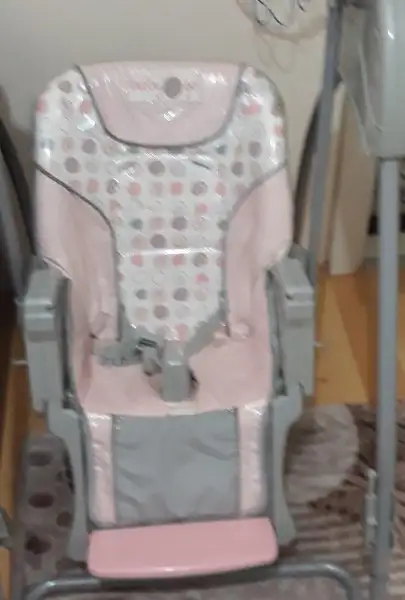 Baby2 go mama sandalyesi sallanir melodili emniyet kemerli ayarlanabilir kademeli sabitlenen kilit sistemi .otomatik sallanma özellikli .2 tane servis tabakligi vardir cok ozellikli netten arastirabilirsiniz vs.yirtik deforme kirik yoktur yesyenidir