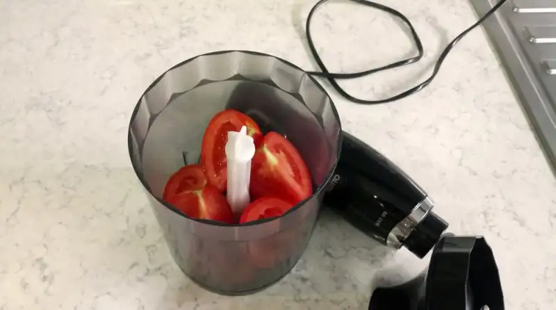Burada bir püf var, domateslerin şu baş kısmındaki yeşil yerleri kesip atarız genelde bilirsiniz. Atmayın, sapını koparıp direkt o yeşil yerleri ile çekin robottan. Domatesin kokusunu ve ekşili-tatlılı tadını arttıran bir noktadır hanımlar.