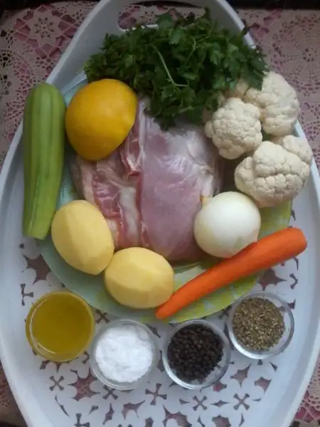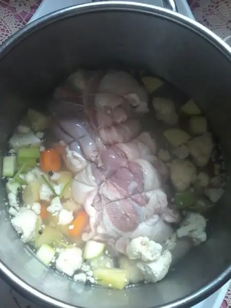 Düdüklü tenceremin içine koydum ve etrafına sebzeleri koydum