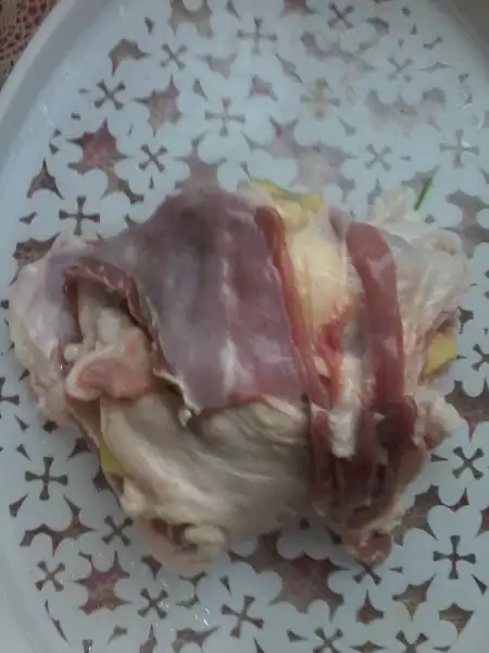 Daha sonra bir tepsiye kuzu sırtımı serip harmanladığım sebzelerin yarısını üstüne koydum