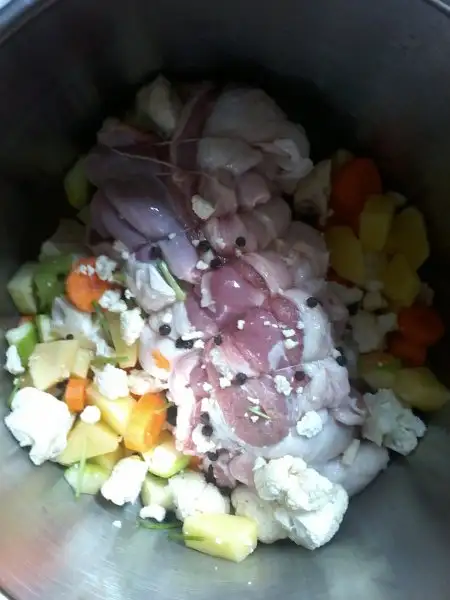 Düdüklü tenceremin içine koydum ve etrafına sebzeleri koydum