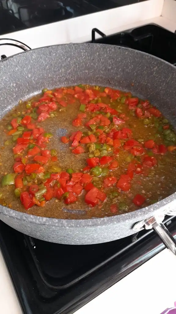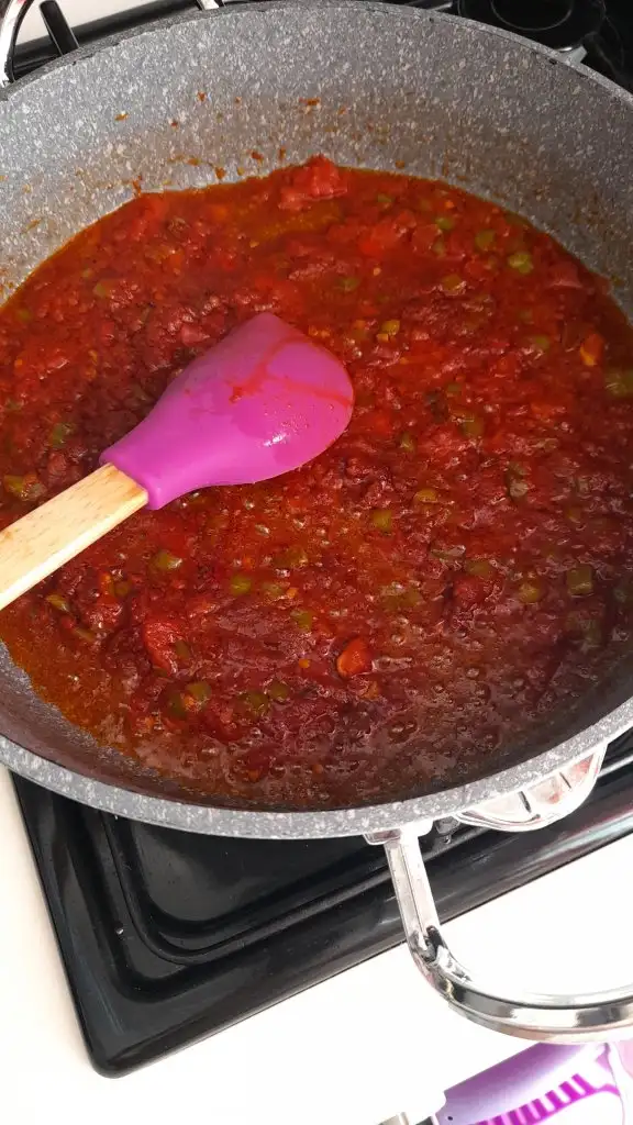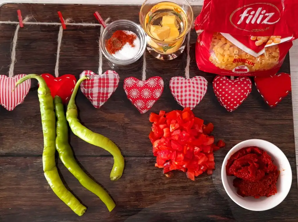 Önce biber ve sıvıyağ ile kavuralım sonra domatesi koyup tencere kapagını kapatıp 5 dk bekleyelim sonra salçalar makarna suyundan biraz dökelim ve baharatları ekleyelim kavurup kapağinı kapatıp 10 dk en kısık ateste pişsin