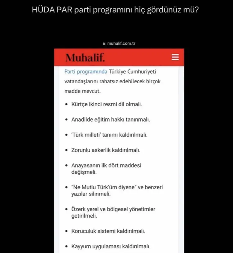 İşine bak A Haber Teyze, ne kendi fikrin ne kendi görüşün var ne kendi cenahına bir eleştirin var, A Haber’de duyduğumuz propogandaları buraya yazıyorsunuz; sen bu argümanlarla ancak kendi üstüne güldürürsün. HüdaPar Cumhur ittifakında, HDP yani YSP ise Milet ittifakında değil. Kaldı ki yasal parti, YSK seçime sokmuş, senin haddine değil eleştirmek. Dünyadan haberin yok. Gitmiş ampul gördüğün yere oy basmışsın. Emine Erdoğan’a da çok yakışmış PKK selâmı. Rezillik görmek isteyen aynaya baksın.Eşi İmamoğlu ile birlikte pkk selamı ile halkı selamlamaya devam !! :)