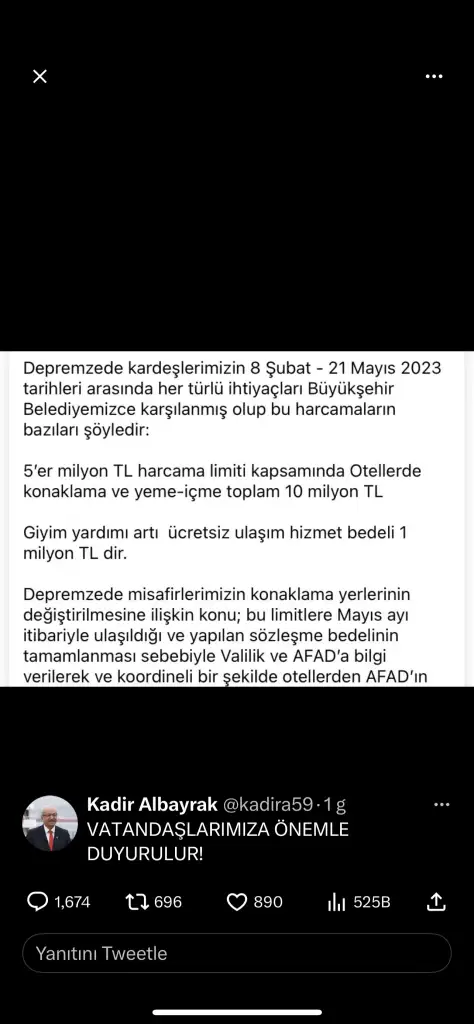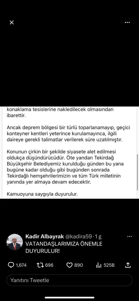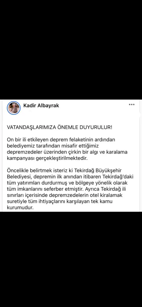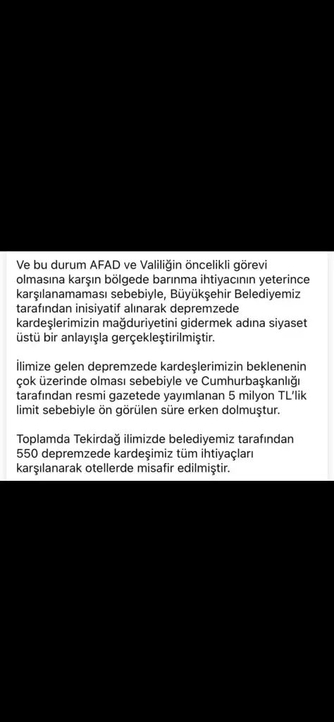 Okuyun bunlari arastirin biraz gercegi, herseye koru korune inanmayinValla Tekirdağ Belediye Başkanının depremzedeleri seçim sonrası otelden çıkarmaya çalıştıktan sonra bir kez daha anladım ne kadar doğru kişiye oy verdiğimi
