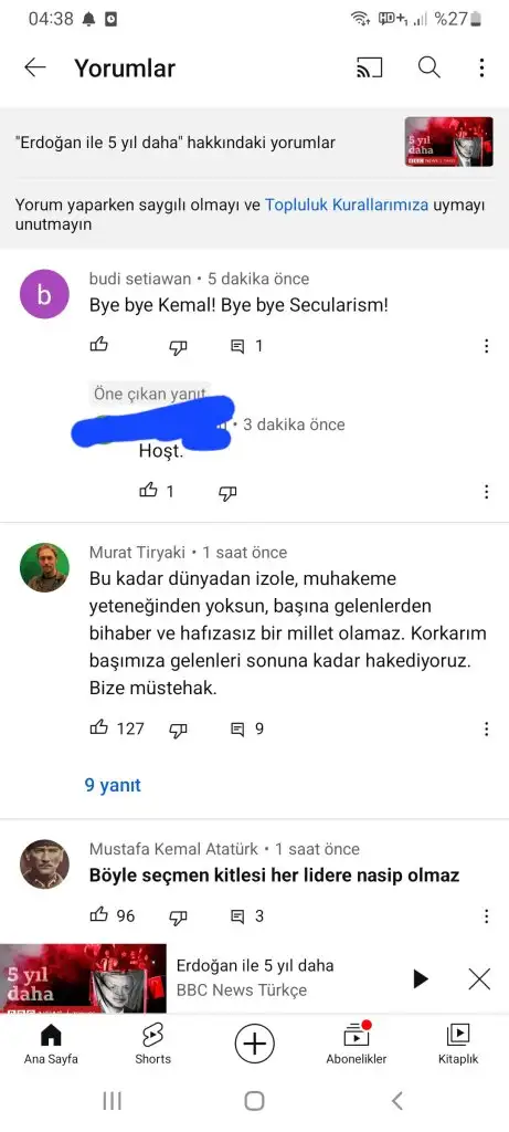 Videoların altına yorum yapanların çoğu Arap ve Azerbaycan'li.Bu ülke bizden başka herkesin olmuş güzel kardeşim,Allah sonumuzu hayır etsin.Atatürk'ün ilmek ilmek işlediği çağdaş ve demokratik sistem ne hale geldi, ben de çok kızgın ve üzgünüm![]()