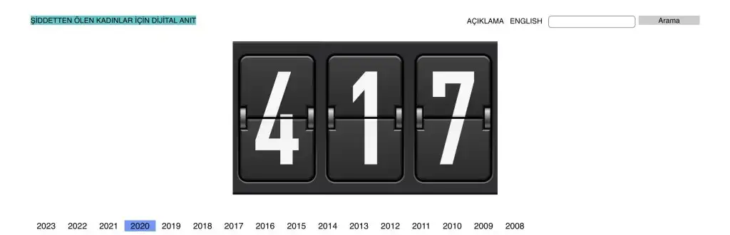 Ayrıca Kadın Cinayetlerinin yıllara göre yer aldığı anıt sayaç sitesi de var, linkini ekleyeceğim ama Güvenli Değil uyarısı çıkıyor bende, o yüzden sitenin virüslü olup olmadığı konusunda şüphem var, oradan aldığım görselleri atayım, altta yılı, üstteki sayaçta da o yıl kaç kadının öldüğü yazıyor:(
