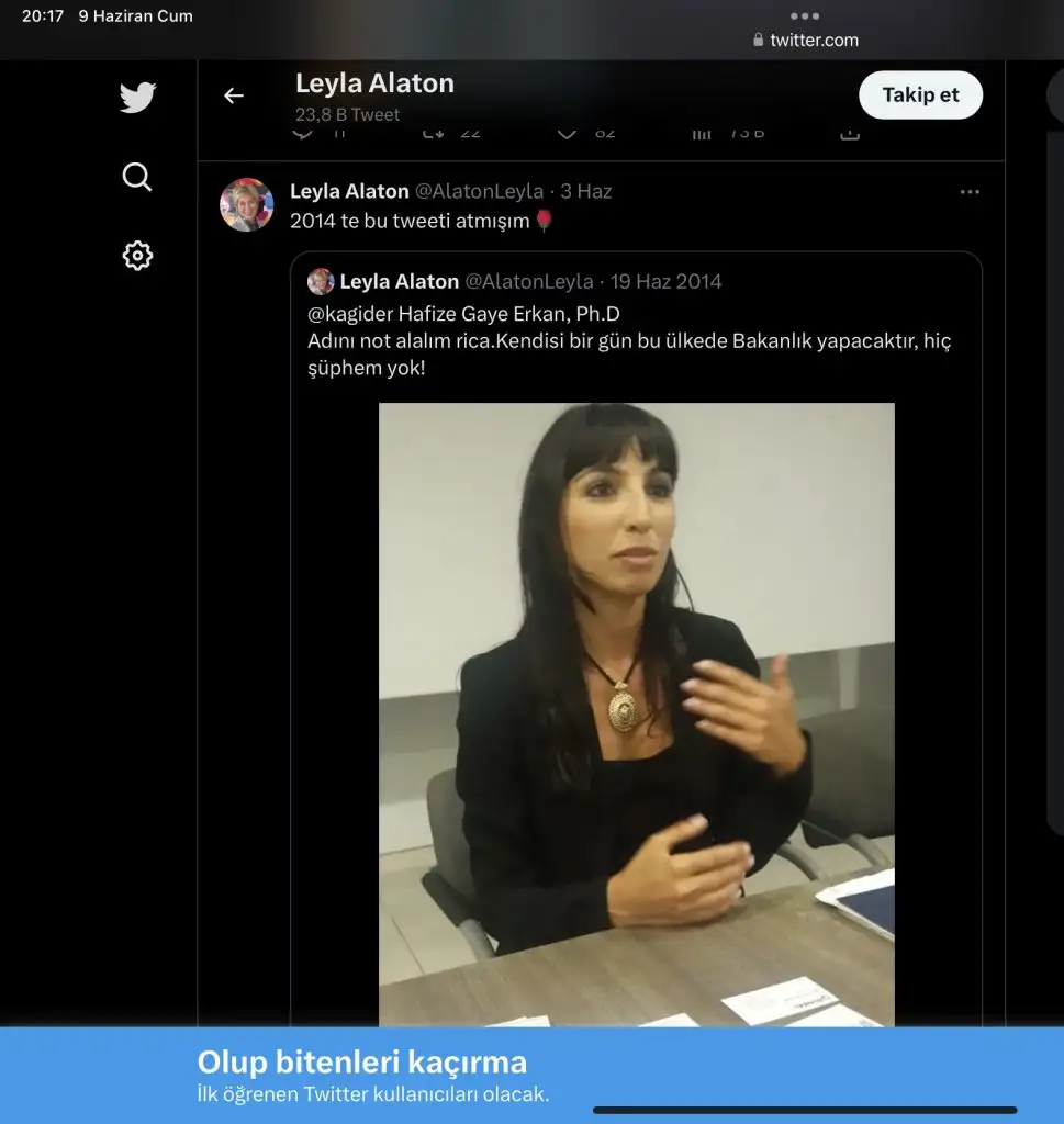 2014’te Leyla Alaton’un Hafize Gaye Erkan‘la ilgili attığı tweet yine gündem olmuş.