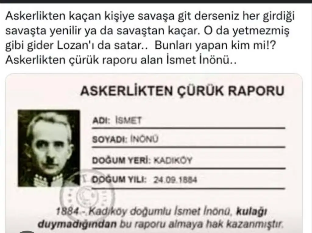 Oysa ki İnönü orgenerallikten emekli olmuş bir paşadır.İnönü'ye asker kaçağı da diyordu onun büyükleri, aynısı, dededen toruna nesil