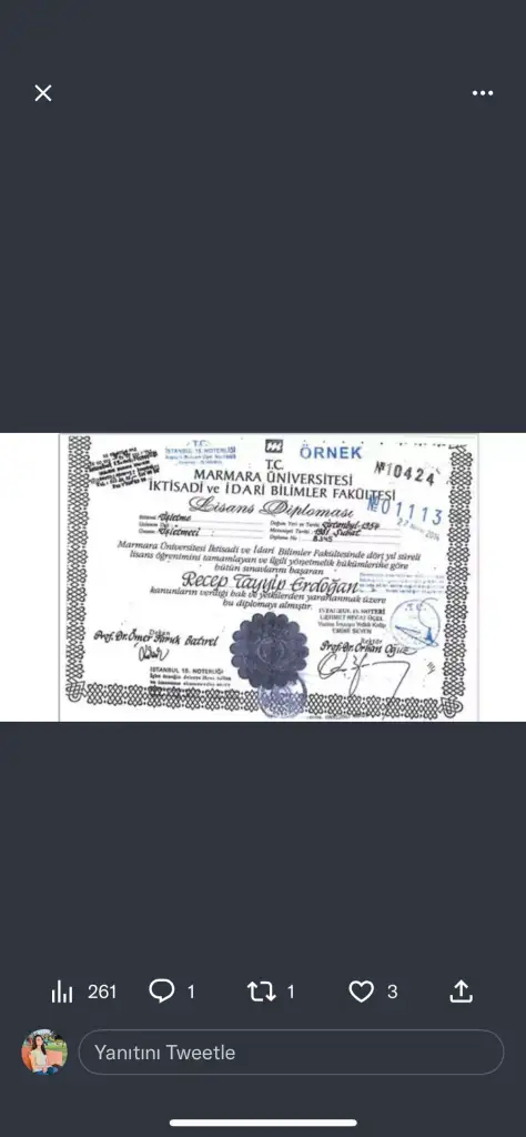 Bakınız dönem diploma ve imzaları tayyip beyin diploması ve ozmanki subay olma durumu ..Bir de bu vardı tabii