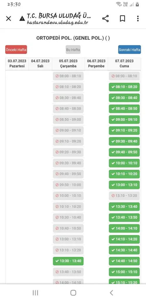 Yalan söylüyor yahu söylerken allahtan da korkmuyor utanmaz.. 2 haftadir var dedigi ortopetiden kendim icin bakıyorum hep en yakin randevu 1.5 2 ay sonrayı gösteriyor..niloya buna da bahane bulsun mhrs den bursa daki bütun devlet hastaneleine bakip birde ordan ekran göruntusü atacagım orda en yakin ne zamana görün diye. 3 güne randevu bulmuş yalancıya bak hele.. işte uludag üniden en yakın randevu tarihi 7. Ayın 5 ine, yani taa temuzz 5 simdi bakıp ekran göruntüsü aldım buraya atmak için.. yeşil görunen yerler en erkeni 05.07.2023 saat 13.30 yazan yerBen genel cerrahiden iki gün sonraya almıştım mesela ama kulak burun veya dermatolojiden asla alamadım özele gitmek zorunda kaldım.