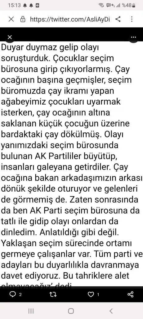 Haberin doğrusu bu mu?Çok büyük bir bilgi kirliliği var malesef.Çaycı fırlatmış çocuğun Suriyeli olmasından rahatsızlık duyup....Hatta peşinden terlikle koşmuş...Kim yaparsa yapsın yapılan doğru değildir.