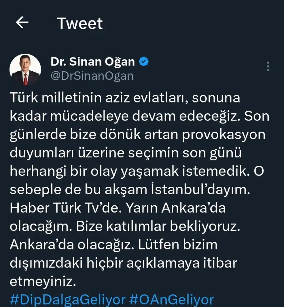 3. Adayın oy bölmedigiyle ilgili tweetler görüyorum. Herkesin garezi inceye idi demek ki.Sarıgül'den başka kim diyor