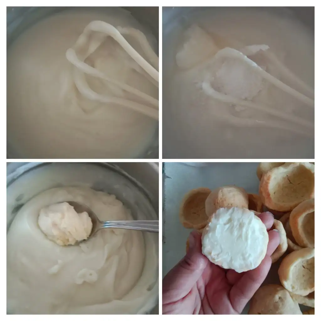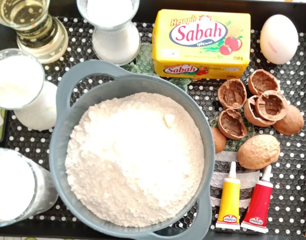 daha sonra un,kabartma tozu, nişasta ekliyoruz,elimize yapismayacak bir hamur elde ediyoruz.
