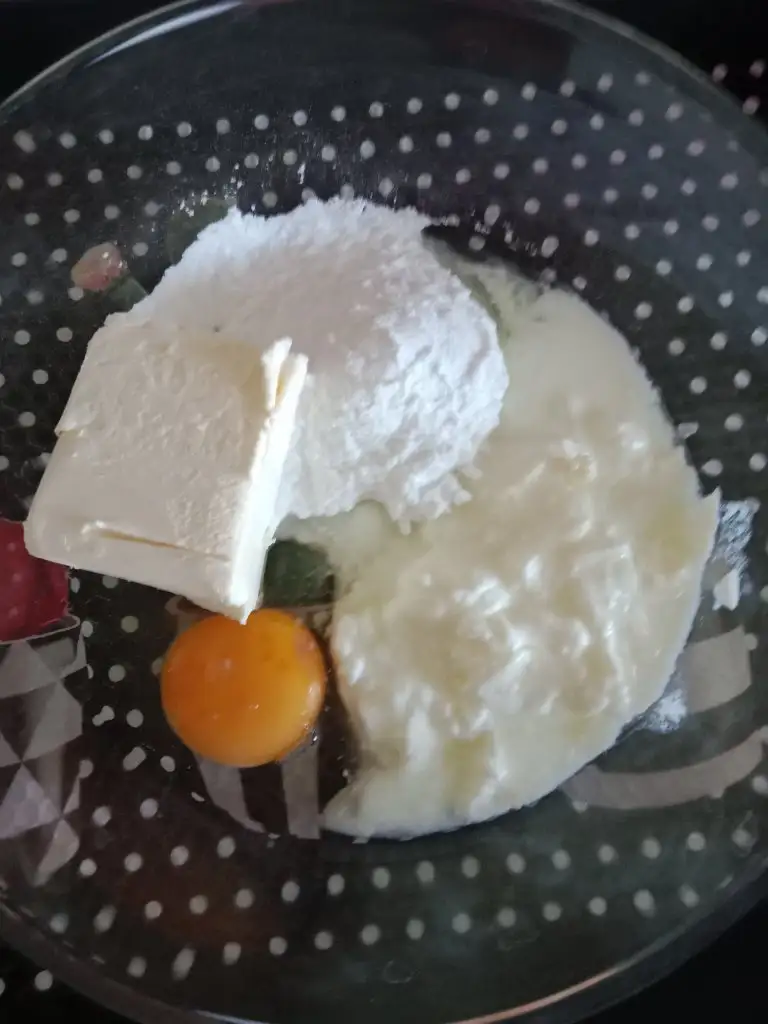 Öncelikle yumurta, sıvıyağ,margarin,yoğurt ve pudra şekerini bir kaba alıp ister elimizle ister mikserle çırpıyoruz.