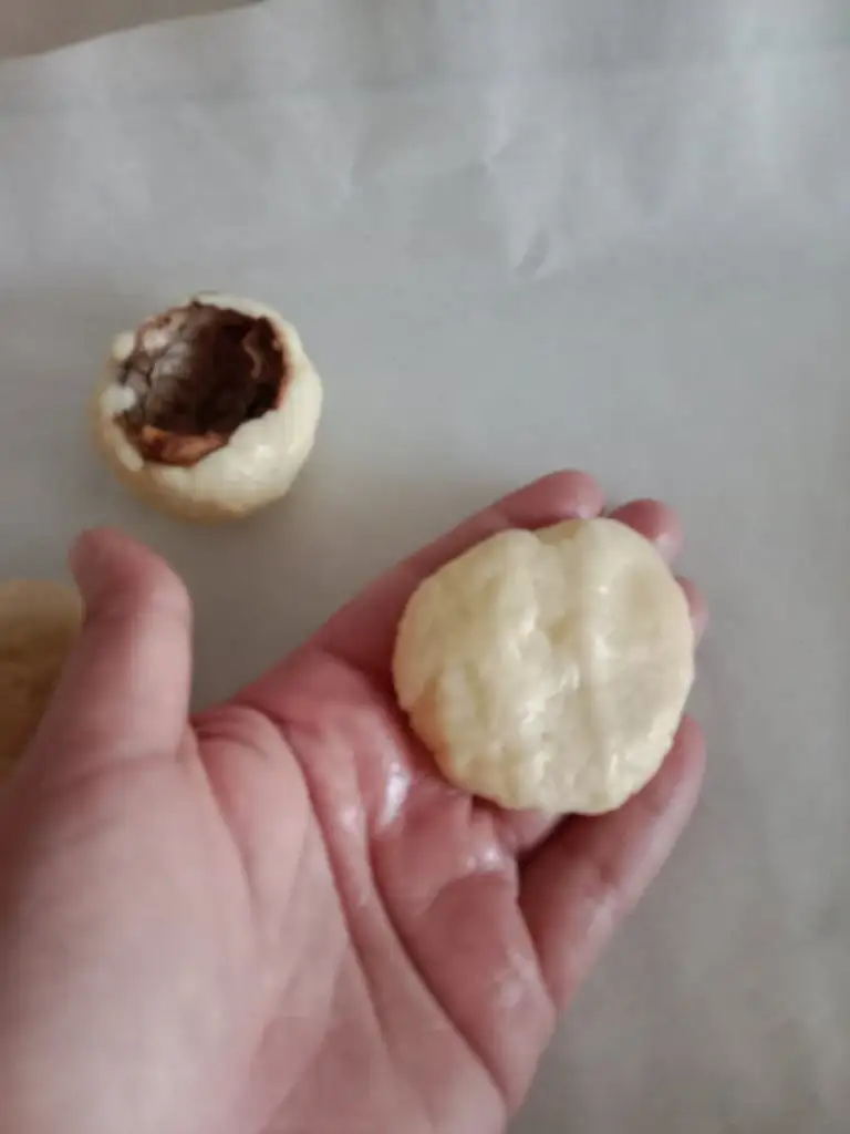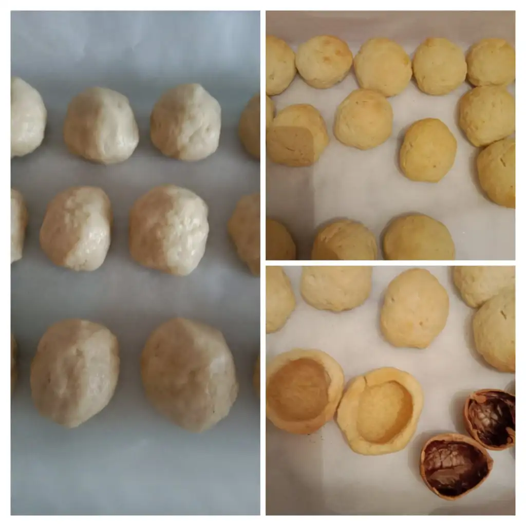 Daha sonra elimizde yuvarlak şekil verip ceviz kabuklarının üzerine hamuru kapatıp şekil veriyoruz.