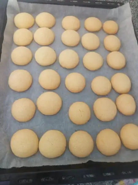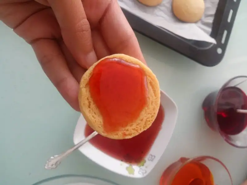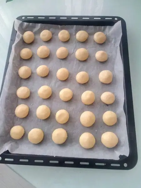 Ceviz büyüklüğünde parçalar alınır yuvarlanır fırın tepsisine dizilir