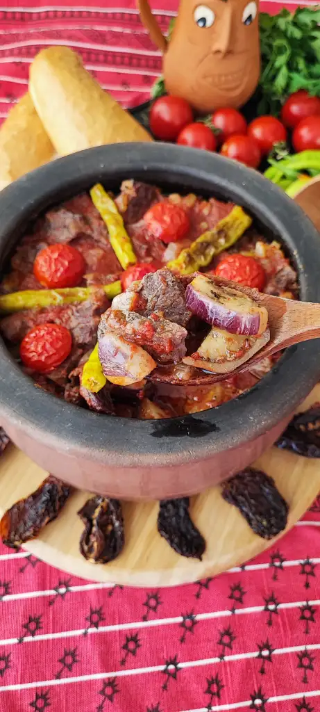 Sosu için etin suyunu kullancaz ve üzerini domates biber ile süsleyeceğiz.