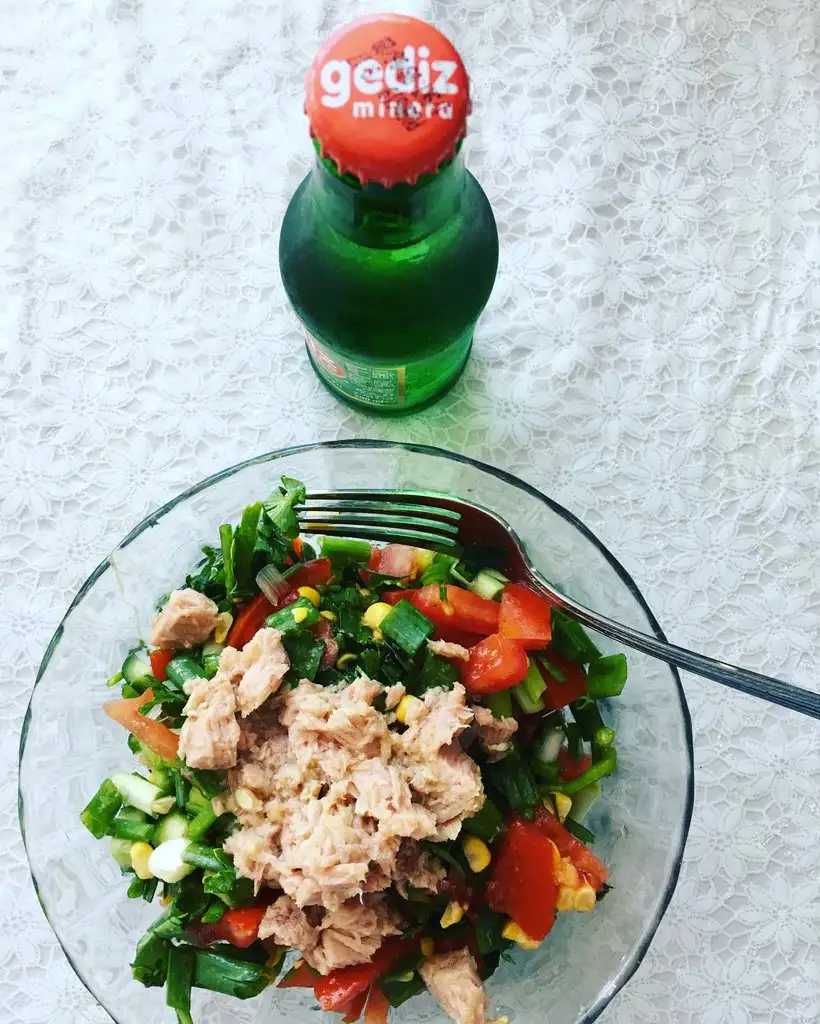 İf 4. Gün akşam yemeğim yağsız limonlu ton balıklı salata safe soda