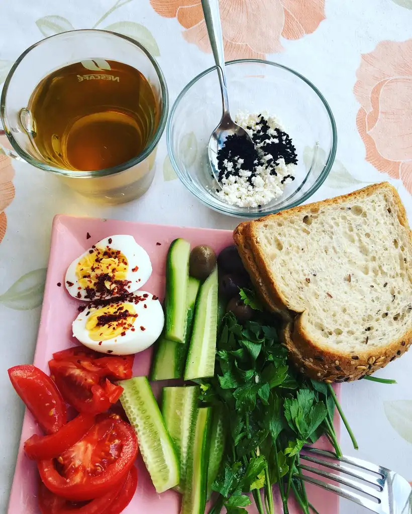 Ben bugün tekrar başladımmm sabah kahvaltısı 9 da yapıldı🙈🙈