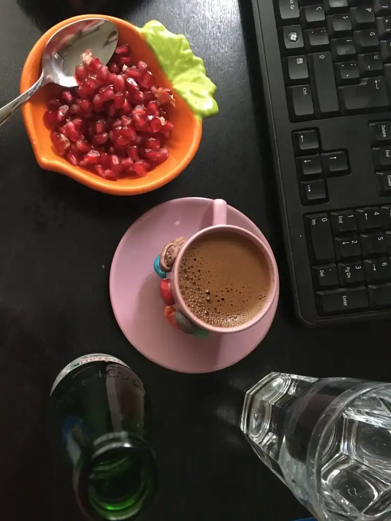 Şimdi ara öğün nar-şekersiz türk kahvesi- sade soda ve limonlu su ile dinlemece :)))