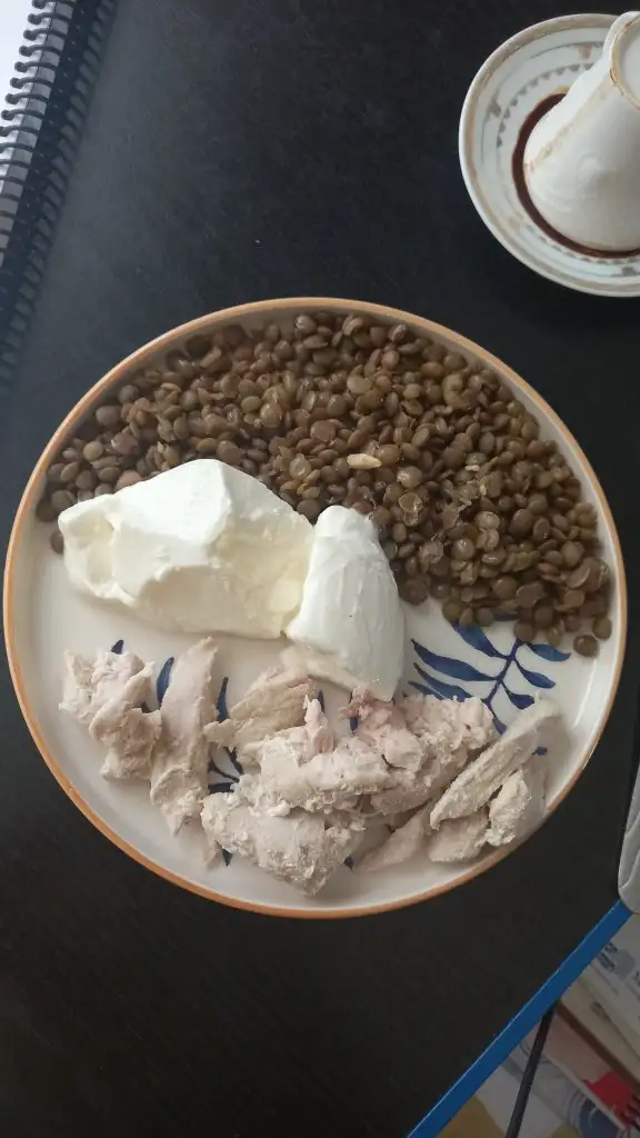 Arada cok acıktım 2 kasik yulaf biraz sut karıştırıp yedim