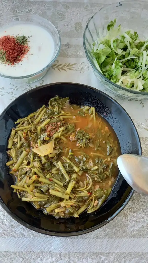 Oglen semizotu ayranli corba salata