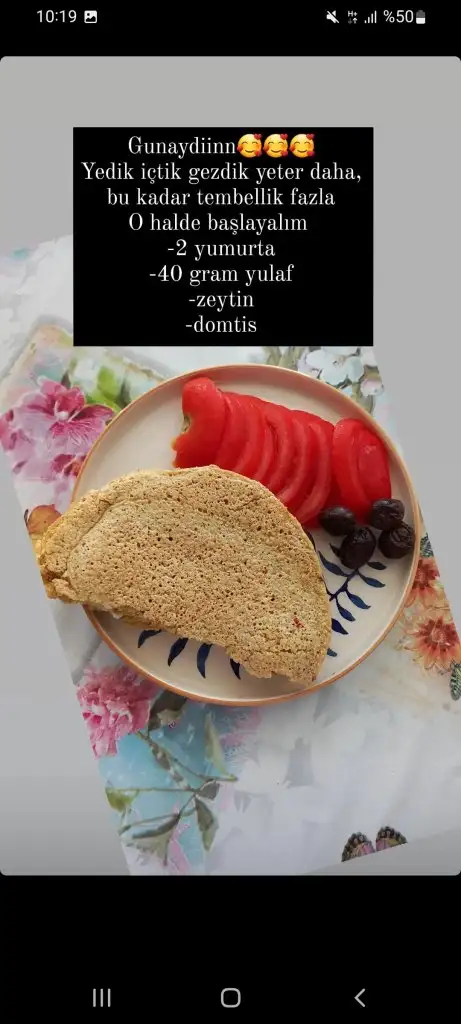 Kahvaltım 2 yumurta yulaf zeytin domtis cay