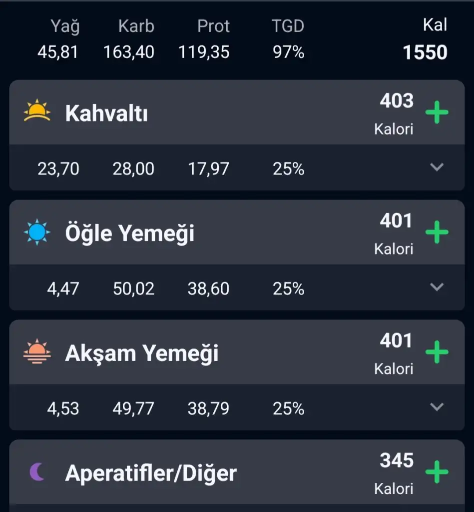 Total 1500 1600 kalori almam lazım