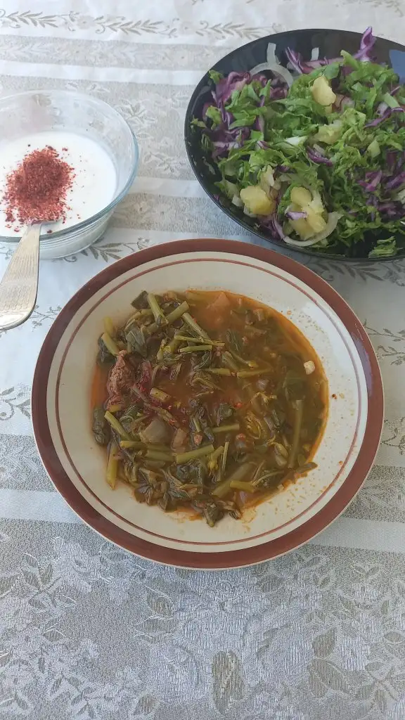 Öğlen semizotu yemegi, salata,1 küçük patates, ayranli corba