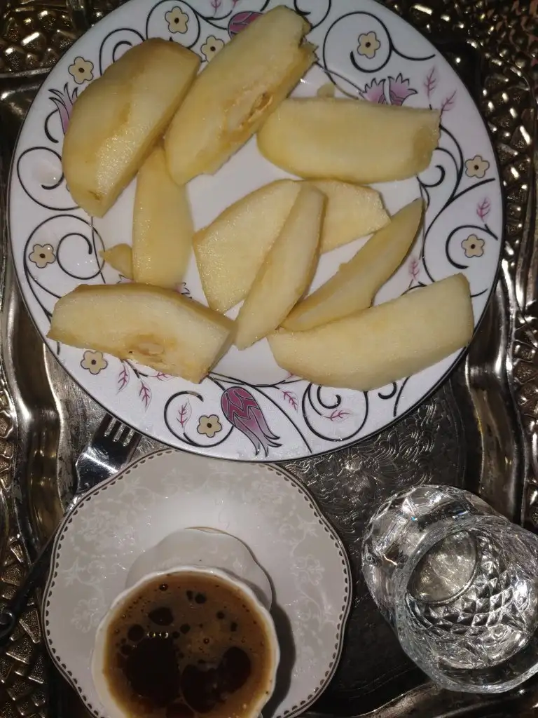 Şimdi yaptim canim dayanamadim. Yarim armut turk kahvesi. Tabagin hepsini yiyemedimAynen normal su içmiyorum hep limon sıkıyorum...belki meyve iyi gelir sende ara ogun yap mutlaka kucuk cocuk var enerji lazım sanada