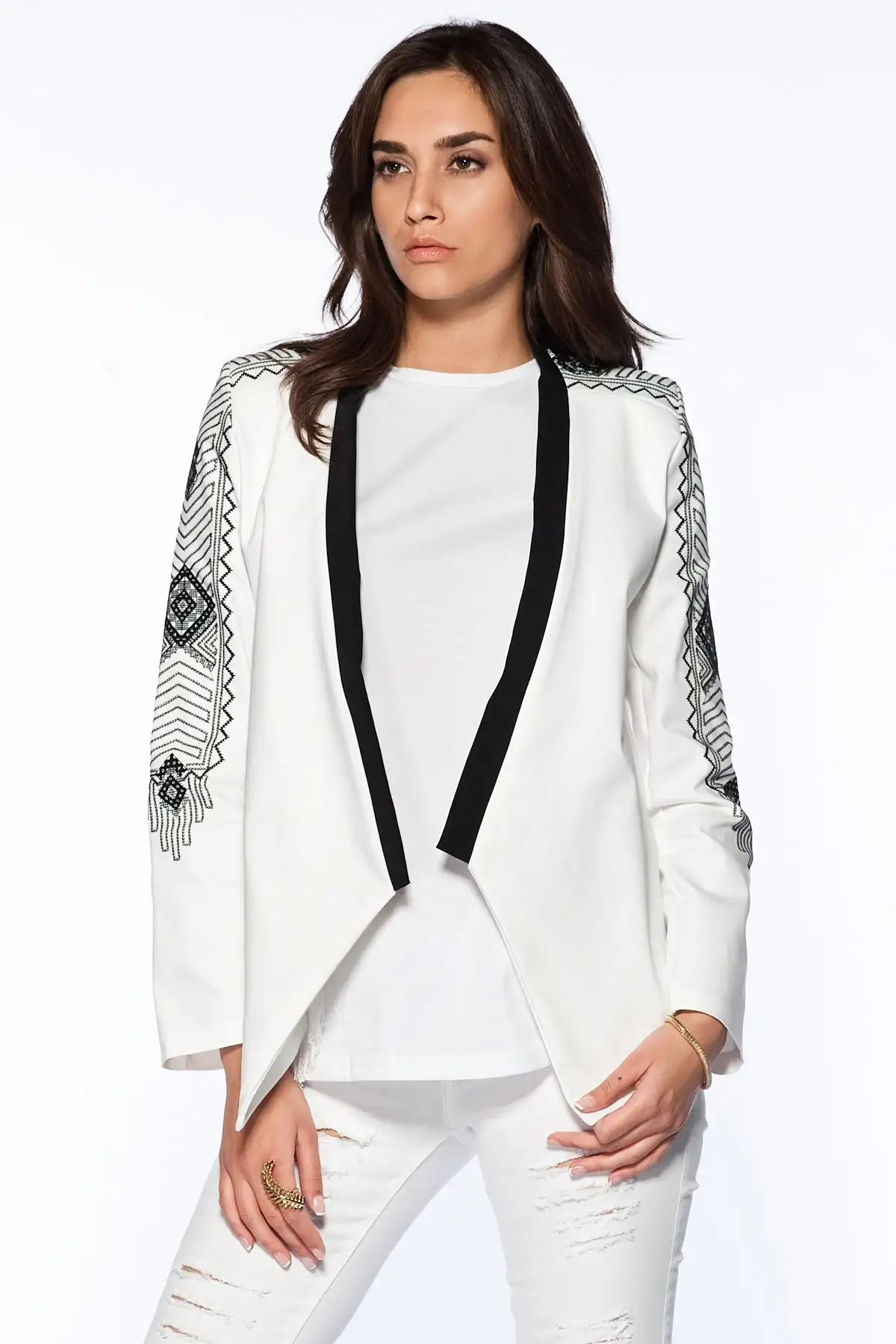 Beyaz ceket kolları siyah etnik desenli S beden 50 TL ( etiketli netten aldım bana büyük geldiği için satıyorum İsteyene kendi resimlerini çeker atarım)