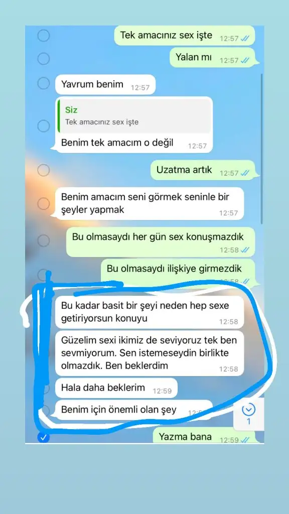 eee dedik biz sana bunu sen bunun neyine şaşırdın ki anlatıyoz anlamıyon ısrarla devam ediyonBana bunları yazdı ben sırf uzak diye görüşmek zor olıyor diye birlikte kalma teklifini kabul ettim diye bana yazdıkları bunlar . Sen istemeseydin olmazdı demesi . Şimdi buna ne denilir ki